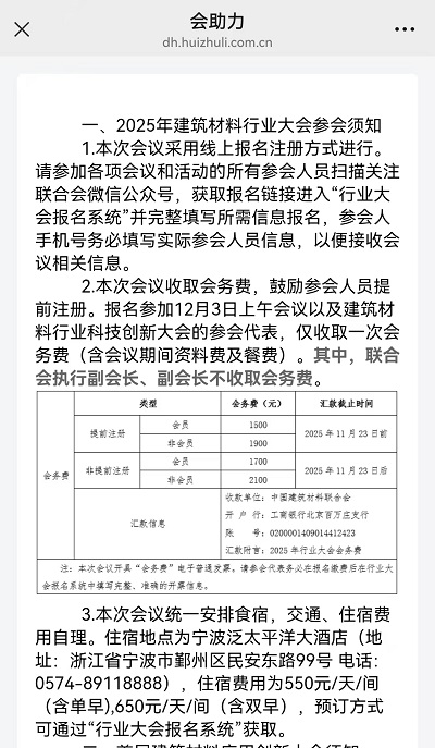 中國建筑材料聯合會于2025年12月3日在浙江寧波召開2025年建筑材料行業大會。