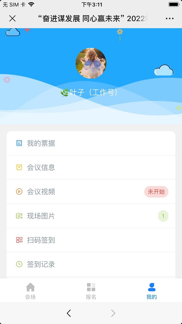 會場包括活動通知,我坐的車子,我的座位號,宴會號碼,我的房間號,大會信息,掃碼簽到,圖文直播,大會文件,宴會廳導航,二次報名信息更正等模塊。