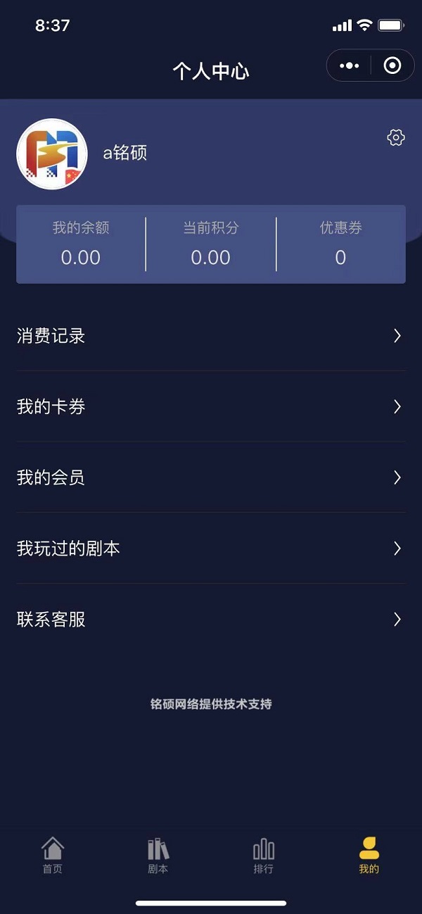 我的可以看到自己的基本信息,包括我的消費(fèi)記錄,我的卡券,我的會(huì)員情況,以及玩過(guò)的劇本等內(nèi)容