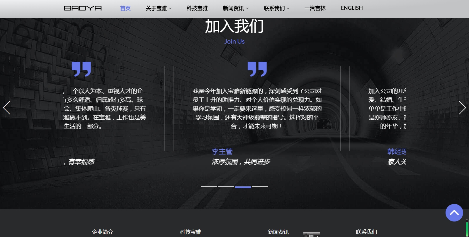 BA0YA網站是銘碩網絡為其定制的官方網站,網站主要包括首頁,關于寶雅,科技寶雅,新聞資訊,聯系我們,一汽吉林等內容。